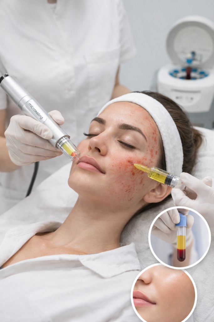 Description:A combination of Microneedling and PRP (Plasma) where platelets from your own blood are applied to the skin. This treatment boosts collagen production, tightens skin, reduces fine lines, and improves overall skin texture naturally.