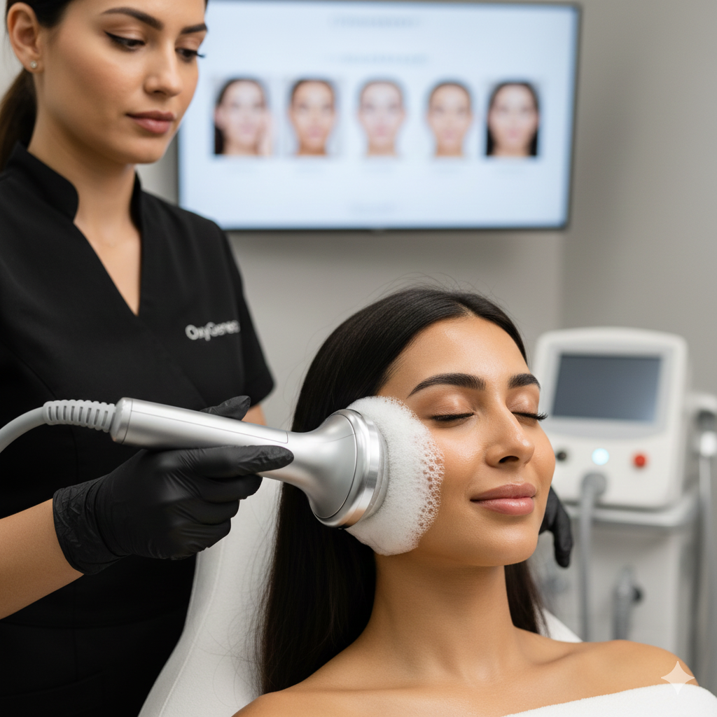 Description: A medical-grade hydradermabrasion device that cleanses, exfoliates, and extracts impurities (blackheads/whiteheads) while infusing hydrating serums. It improves skin teture , boosts hydration, and gives an instant glow with no downtime , making it suitable for all skin types.